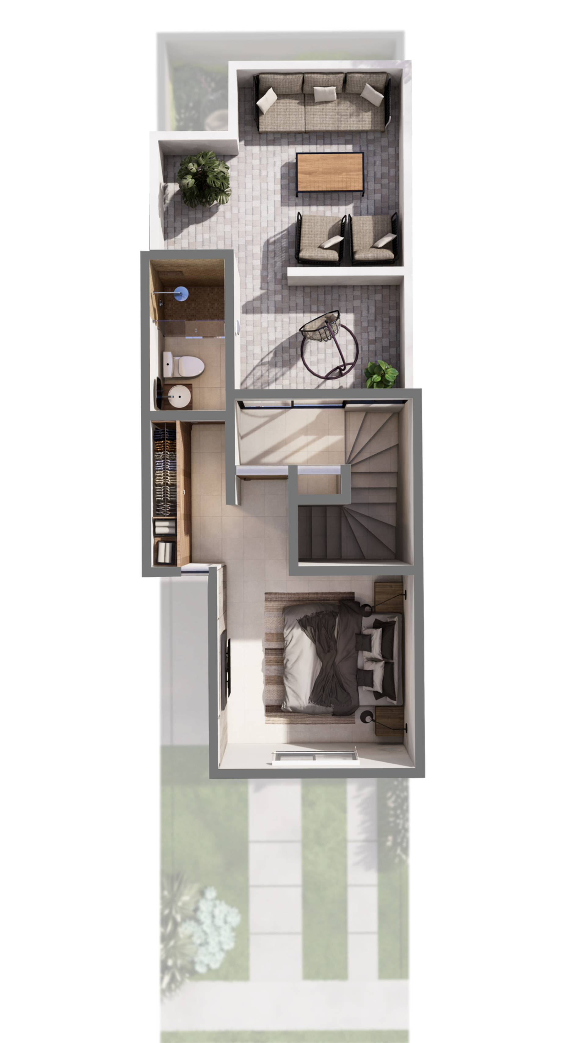 En planta alta, encontrarás una recámara principal con vestidor, baño completo y roof garden.