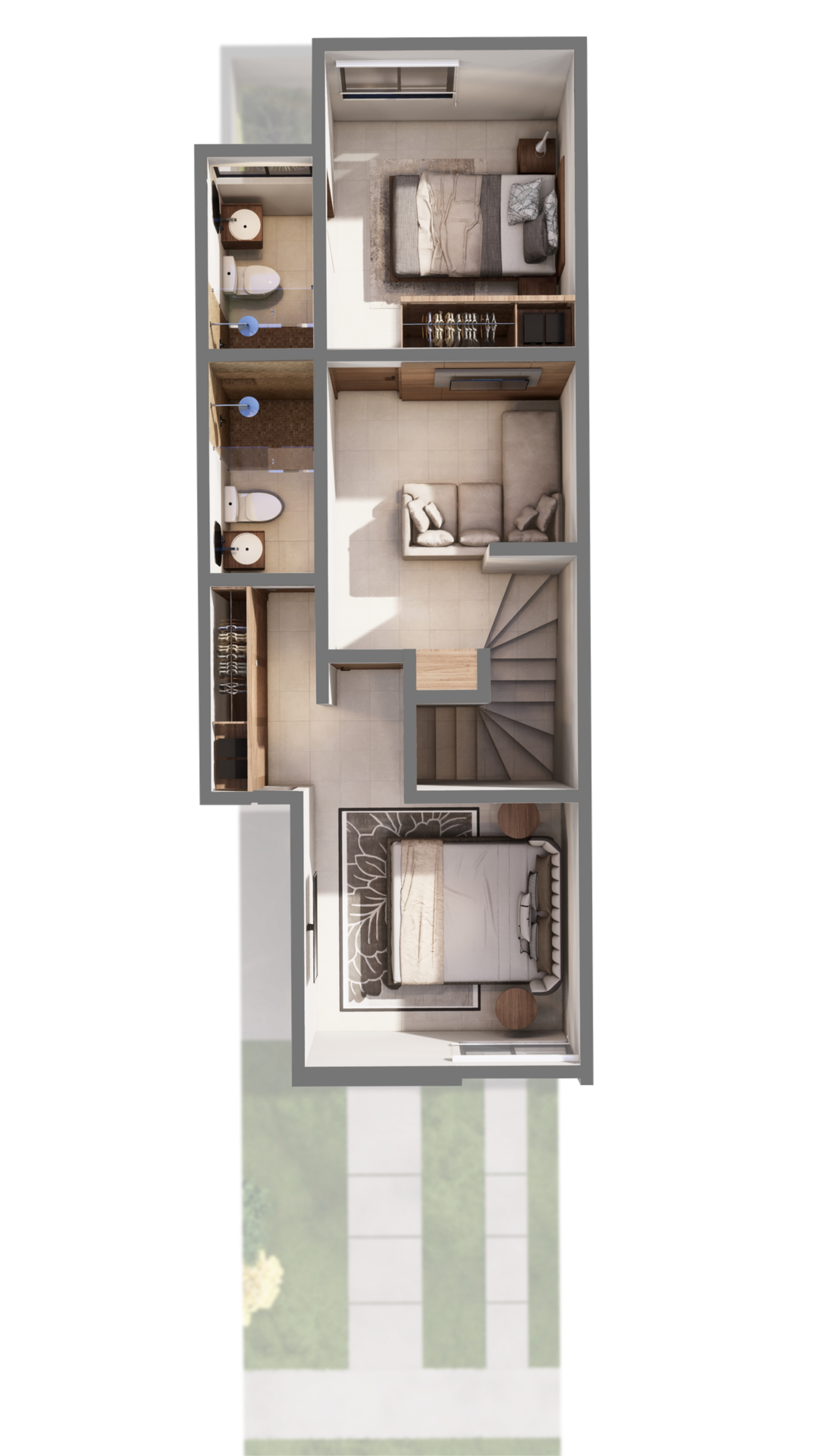 En planta alta, la habitación principal con vestidor, baño completo y estancia te brindarán un espacio perfecto para relajarte.