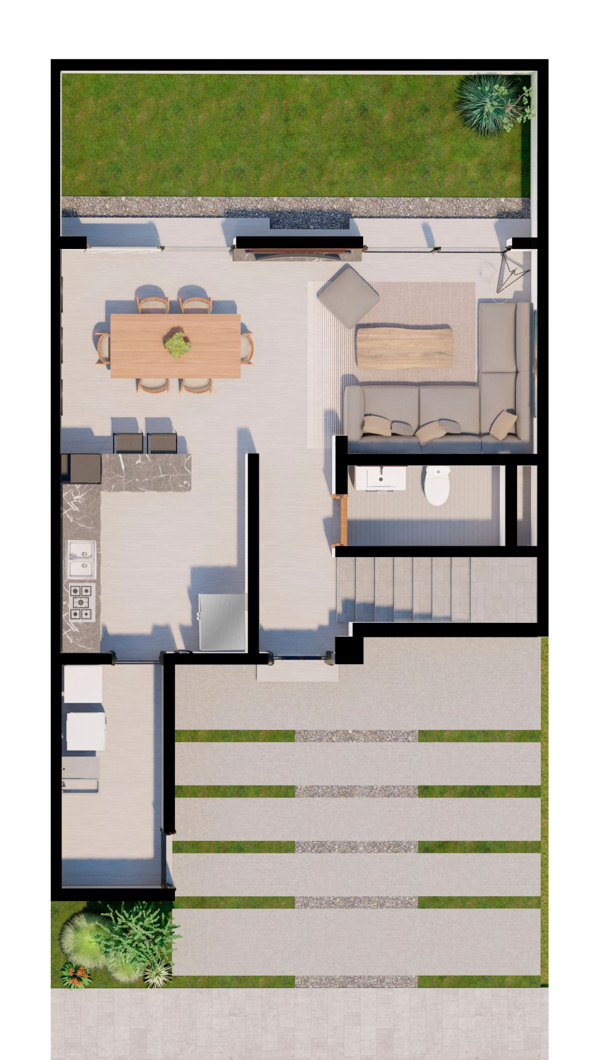 Planta Baja: Sala, comedor y cocina.